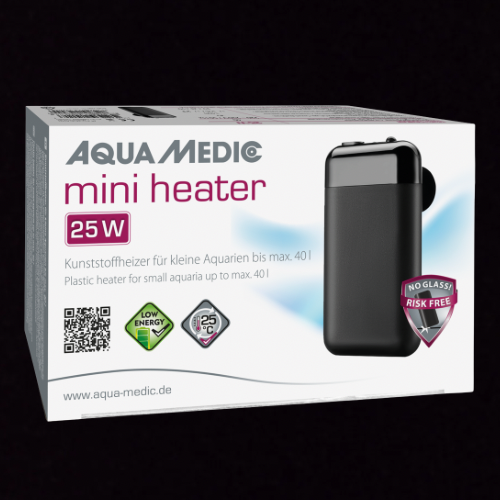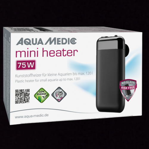 Der mini heater ist mit einem langlebigen Kunststoffgehäuse ausgestattet und ist geeignet für kleine Aquarien mit einem Wasservolumen bis max. 120 l. Durch die mitgelieferte Halterung lässt sich der mini heater flexibel positionieren. Eine intelligente Elektronik hält das Wasser im Aquarium konstant auf ca. 25 °C. Eine gut sichtbare LED-Statusanzeige gibt zuverlässig Auskunft über den Betriebszustand. Das bruchsichere und wasserdichte Kunststoffgehäuse verleiht dem mini heater nicht nur ein stylisches Design, sondern sorgt auch für höchste Sicherheit im Aquarium. Der mini heater ist mit einem Überhitzungs- und Trockenlaufschutz ausgestattet.