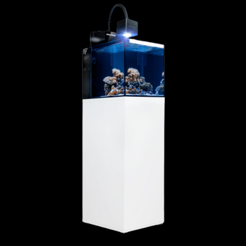 Das Blenny Qube zeichnet sich durch die umfangreiche Serienausstattung aus. Sowohl der Abschäumer EVO 500 als auch die Strömungspumpe EcoDrift 4.3 sind über einen Controller regelbar und lassen sich auf die Bedürfnisse der gehaltenen Tiere optimal einstellen. Das integrierte Filterbecken, abgetrennt durch eine hochwertige Acrylglas-Rückwand, garantiert einfachste Handhabung. Ein weiteres Highlight ist die LED-Beleuchtung Qube 50. Der LED Cluster Chip besteht aus 24 einzelnen LED-Elementen in fünf verschiedenen Lichtfarben, die durch zwei Kanäle separat manuell in Lichtfarbe und -menge einstellbar sind. Die hohe Energiedichte der LED-Leuchte macht die Haltung von lichthungrigen Tieren problemlos möglich. Abschäumer, Strömungspumpe und LED-Beleuchtung verfügen über einen 0 – 10 Volt Anschluss, wodurch die Verwendung von externen Steuergeräten ermöglicht wird.