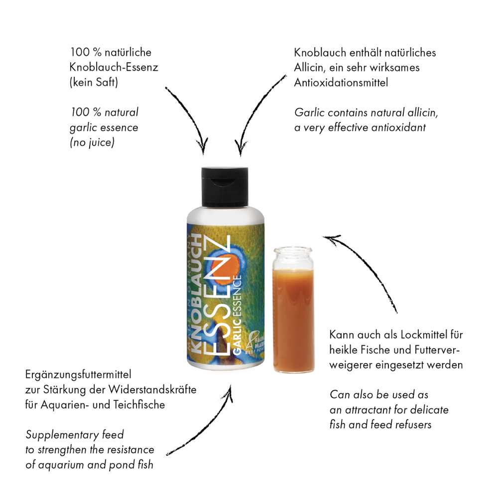Es dient auch als Lockmittel für heikle Fische und Futterverweigerer. Es handelt sich hierbei um einen echten Extrakt aus deutscher Produktion. Wir verwenden ausdrücklich kein Knoblauchöl!