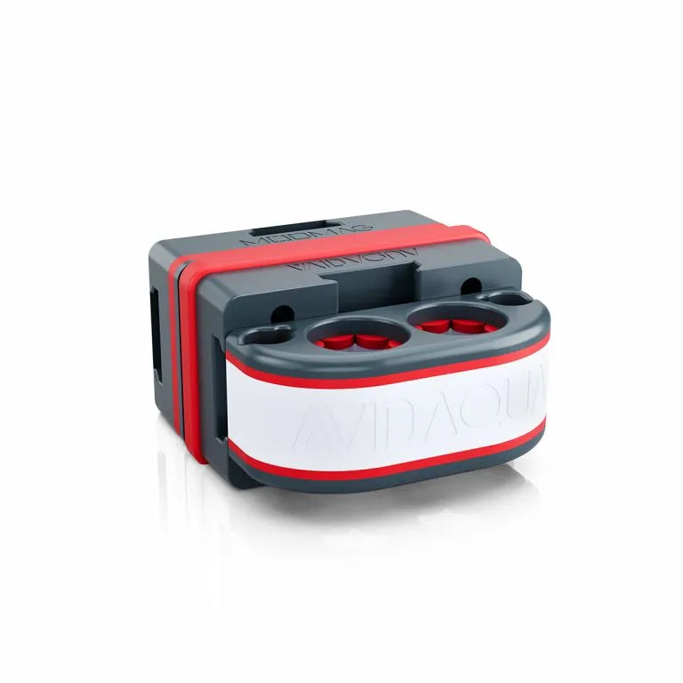 Andere Sondenhalter bestehen aus zerbrechlichem Acryl und sind verklebt. Mit der Zeit quillt das Acryl unbemerkt auf, der Kleber löst sich, und Salzwasser dringt ein, korrodiert den Magneten und gibt Schwermetallgifte an Ihr Aquarium ab. Setzen Sie nicht Ihr gesamtes Riff und Ihre geliebten Tiere diesem Risiko aus. Der ModMag des MPO Duo hingegen ist aus robustem, inertem und flexiblem ABS-Kunststoff gefertigt und ultraschallverschweißt sowie doppelt gegen Wassereintritt abgedichtet – ganz ohne Klebstoff. Die beiden Teile bilden beim Zusammenbau praktisch eine Einheit. Zusätzlich können Sie mit der innovativen „Shake Test“-Funktion des ModMag jederzeit überprüfen, ob Ihr Magnet im Gehäuse noch sicher und trocken ist. Die Sonden im MPO Duo werden durch das zum Patent angemeldete Slide-Loc®-Silikondichtungssystem sicher fixiert. Einfach die Sonde einschieben, und sie sitzt fest – ganz ohne Reibung. Keine Rändelschrauben, die sich verklemmen, abbrechen oder Ihre Sonden beschädigen könnten. Im Lieferumfang enthalten sind zwei Führungsrohre, die die Schläuche Ihres automatisierten Testsystems, wie beispielsweise die des Trident, sicher fixieren und verhindern, dass Luft oder Schmutz vom Boden des Filterbeckens angesaugt werden. Außerdem ist ein Adapter für kleinere Temperaturfühler enthalten.