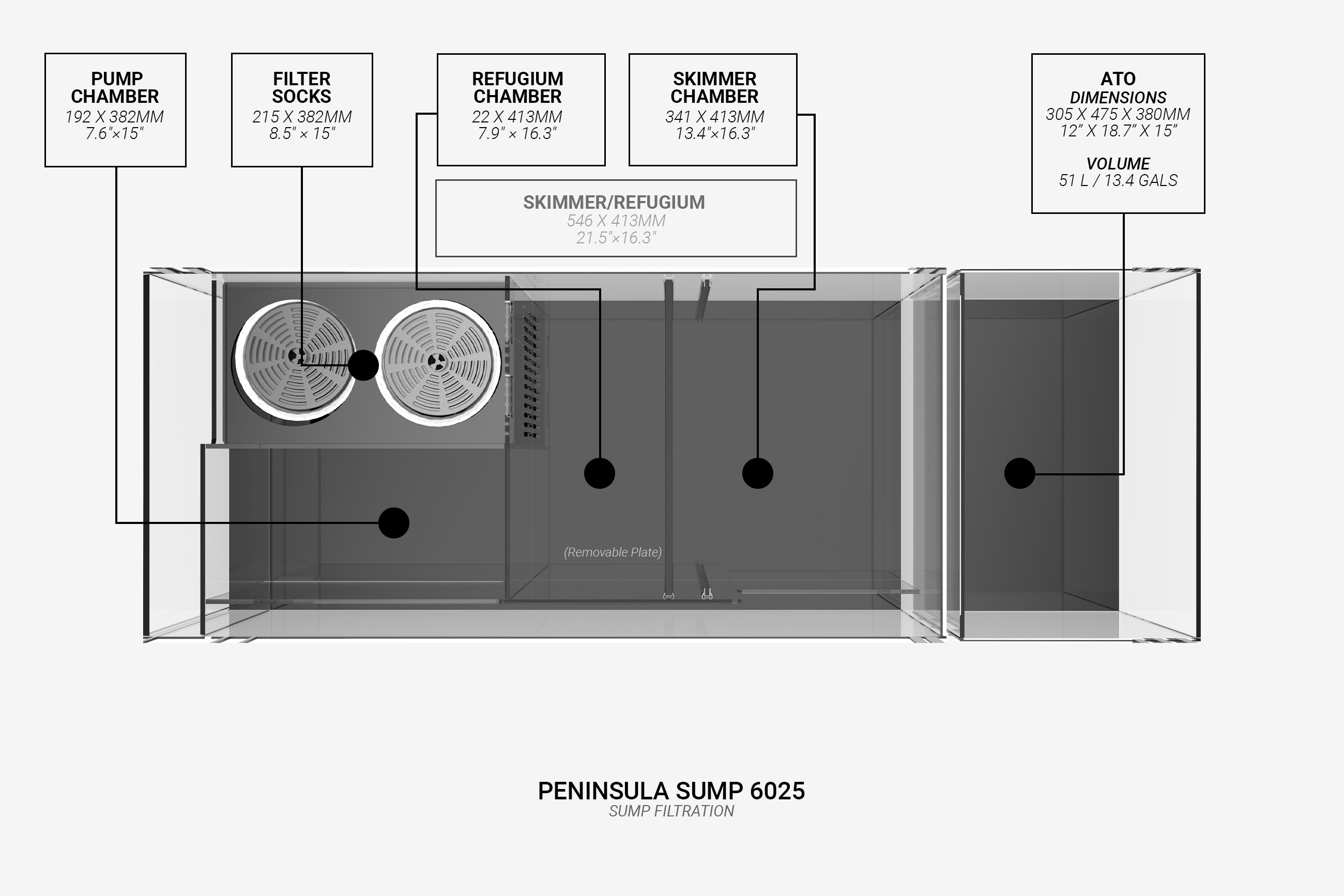 The PENINSULA sump system features an integrated filter sock chamber which can easily adopt the most popular filter rollers.