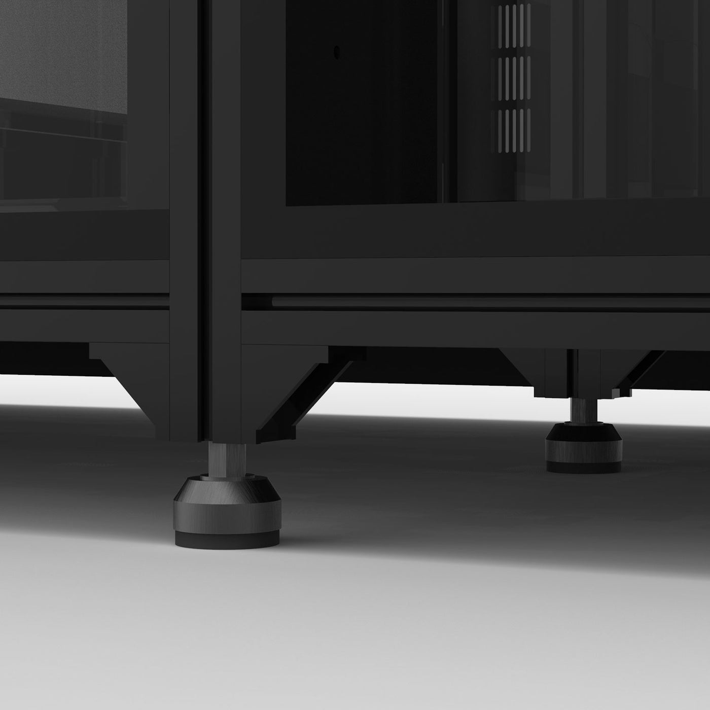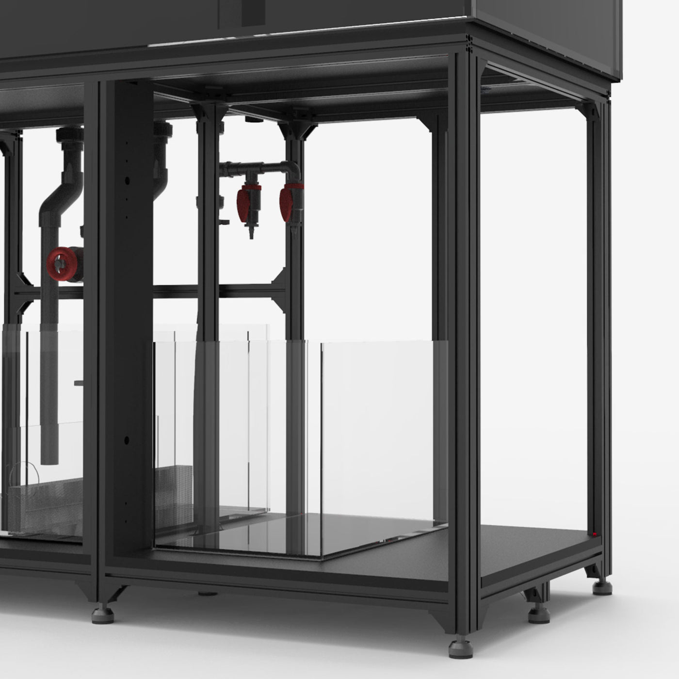 Exzentrische Nivellierfüße schaffen das stabilste Fundament für diese überdimensionalen Aquariensysteme.