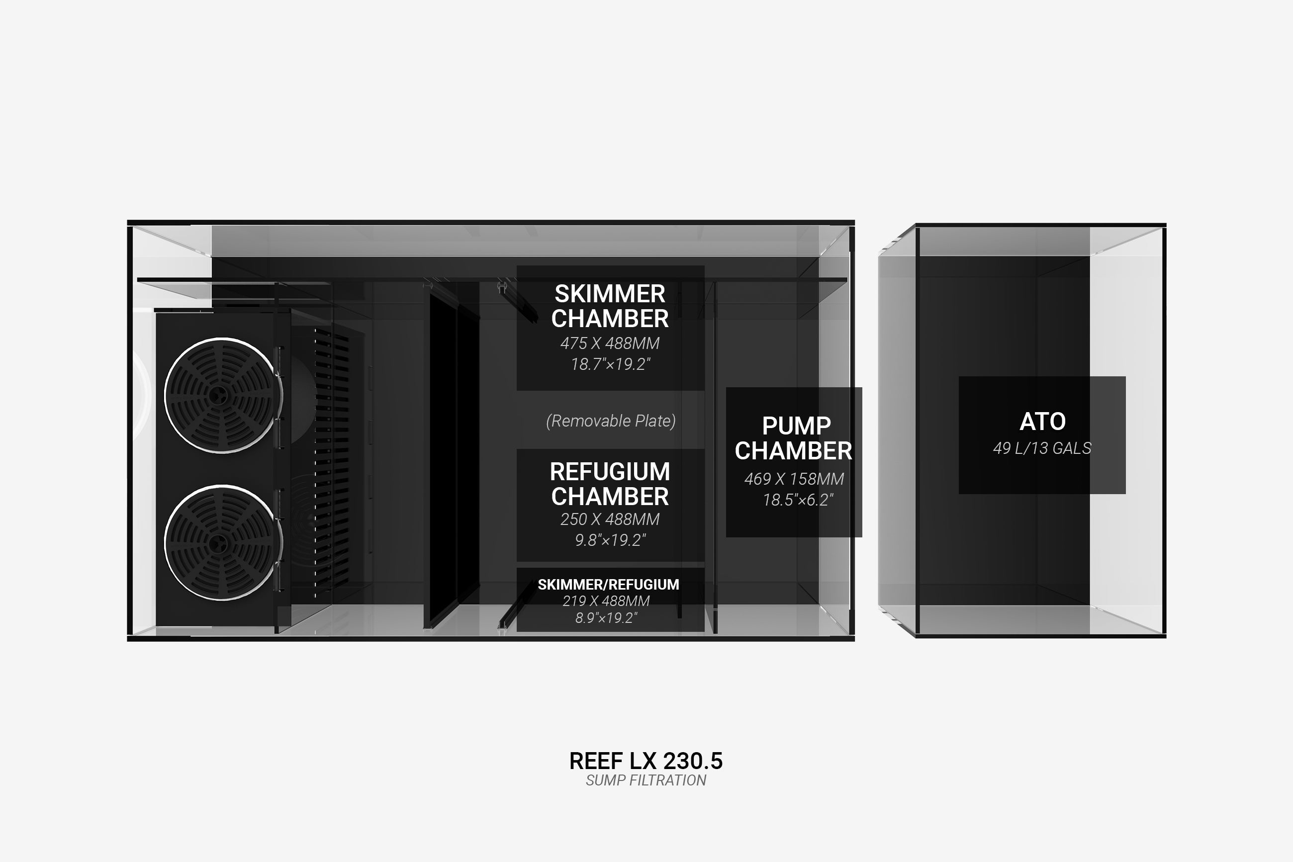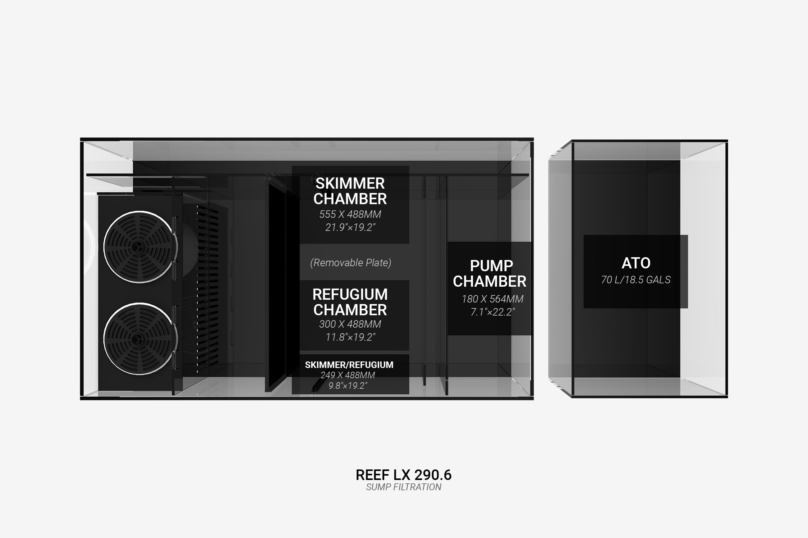 Unsere REEF™-Systeme glänzen mit unserem durchdacht gestalteten, dimensionierten und platzierten Sumpfsystem, das ausreichend Platz für alle Filtergeräte bietet.