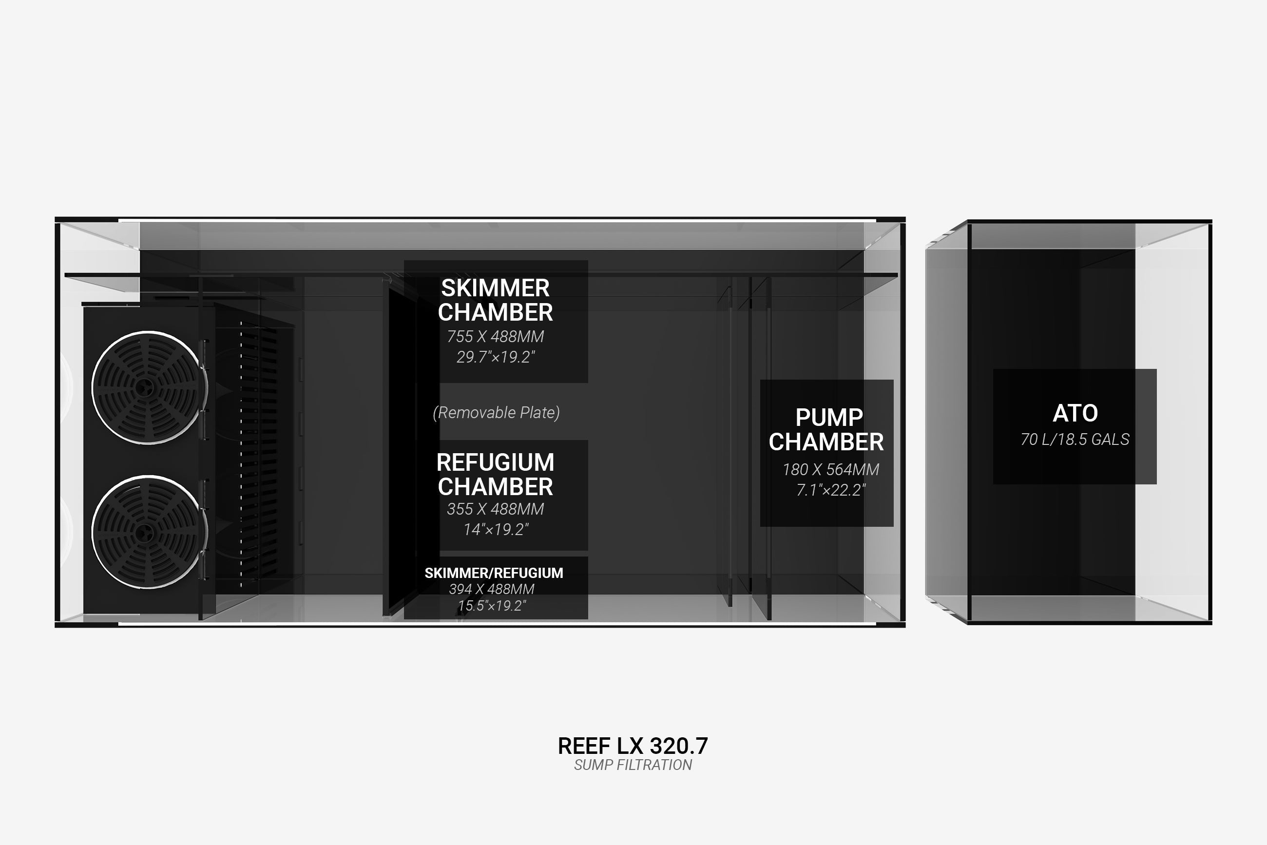 Unser REEF LX bietet eine erstaunliche Tiefe von 30 Zoll (750 mm) für die ultimativen Aquascaping-Möglichkeiten.